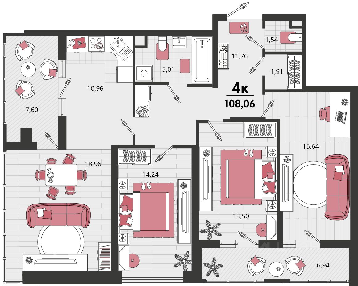Продаётся 4-комнатная квартира в строящемся доме (Литер 15), срок сдачи: II-кв. 2026, общей площадью 100.79 кв.м., на 18 этаже. "Родные просторы"- самодостаточный