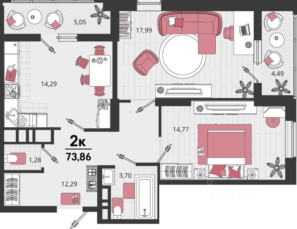 Продаётся 2-комнатная квартира в строящемся доме (Литер 15), срок сдачи: II-кв. 2026, общей площадью 69.1 кв.м., на 2 этаже. "Родные просторы"- самодостаточный