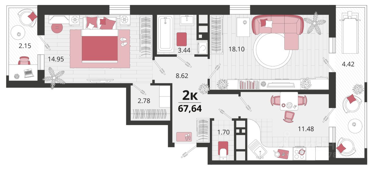 Продаётся 2-комнатная квартира в сданном доме (Литер 20), срок сдачи: II-кв. 2025, общей площадью 68 кв.м., на 2 этаже. "Родные просторы"- самодостаточный
