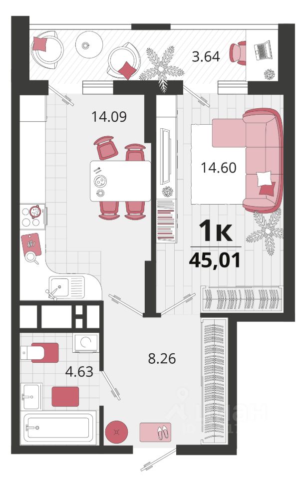 Продаётся 1-комнатная квартира в сданном доме (Литер 23), срок сдачи: IV-кв. 2024, общей площадью 45.45 кв.м., на 2 этаже. "Родные просторы"- самодостаточный