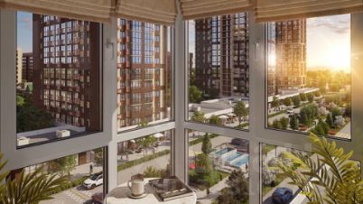 от 9 до 24 этажей, уютные дворы со спортивными и игровыми площадками,