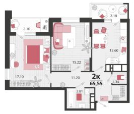 Продаётся 2-комнатная квартира в сданном доме (Литер 23), срок сдачи: IV-кв. 2024, общей площадью 65.35 кв.м., на 22 этаже. "Родные просторы"- самодостаточный