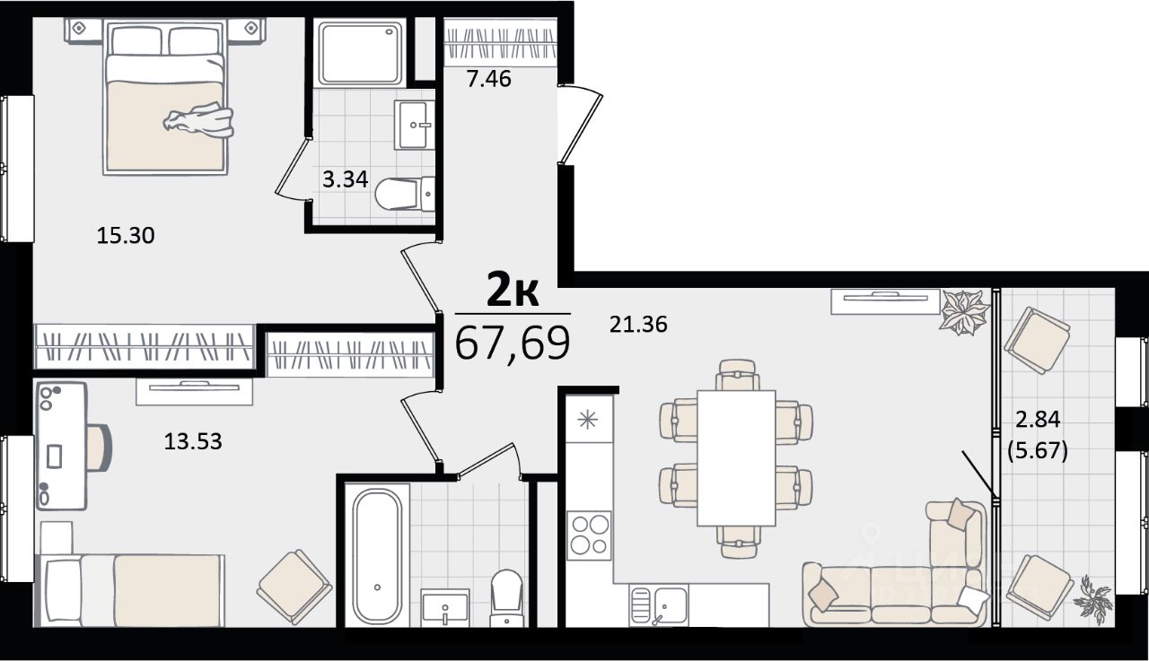 Продаётся 2-комнатная квартира в строящемся доме (Литер 5.1), срок сдачи: IV-кв. 2026, общей площадью 67.69 кв.м., на 2 этаже. Флагманский проект группы компаний Точно - жилой комплекс бизнес-класса Патрики, это 10 домов разной этажности расположившихся на 28,5 гектарах. Жилой комплекс с концепцией город в город - прогулочные аллеи, парковая территория, 3 детских сада, 2 школы - одна из которых частная, Гранд аллея с ресторанами, фонтанами и модными бутиками, уникальные мафы и ландшафтный дизайн, создают особую атмосферу - место в котором хочется находиться. В Патриках предусмотрен и креативный кластер Цех, который включает в себя пространство для коворкинга, фудкорт, бутики, детский комплекс, лектории, фитнес-клуб Баланс с волной для сёрфа. Но и это еще не все ГК Точно уважает историю, поэтому мы сохранили 2 башни - наследство от завода "Сельмаш" исторический арт-объект назвали Мастер и Маргарита.
