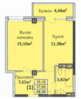 Общая площадь42,39 м²
