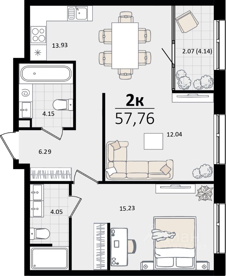 Продаётся 2-комнатная квартира в строящемся доме (Литер 4.1), срок сдачи: IV-кв. 2026, общей площадью 57.76 кв.м., на 2 этаже. Флагманский проект группы компаний Точно - жилой комплекс бизнес-класса Патрики, это 10 домов разной этажности расположившихся на 28,5 гектарах. Жилой комплекс с концепцией город в город - прогулочные аллеи, парковая территория, 3 детских сада, 2 школы - одна из которых частная, Гранд аллея с ресторанами, фонтанами и модными бутиками, уникальные мафы и ландшафтный дизайн, создают особую атмосферу - место в котором хочется находиться. В Патриках предусмотрен и креативный кластер Цех, который включает в себя пространство для коворкинга, фудкорт, бутики, детский комплекс, лектории, фитнес-клуб Баланс с волной для сёрфа. Но и это еще не все ГК Точно уважает историю, поэтому мы сохранили 2 башни - наследство от завода "Сельмаш" исторический арт-объект назвали Мастер и Маргарита.