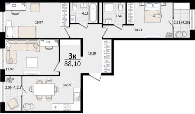 Продаётся 3-комнатная квартира в строящемся доме (Литер 4.1), срок сдачи: IV-кв. 2026, общей площадью 88.1 кв.м., на 10 этаже. Флагманский проект группы компаний Точно - жилой комплекс бизнес-класса Патрики, это 10 домов разной этажности расположившихся на 28,5 гектарах. Жилой комплекс с концепцией город в город - прогулочные аллеи, парковая территория, 3 детских сада, 2 школы - одна из которых частная, Гранд аллея с ресторанами, фонтанами и модными бутиками, уникальные мафы и ландшафтный дизайн, создают особую атмосферу - место в котором хочется находиться. В Патриках предусмотрен и креативный кластер Цех, который включает в себя пространство для коворкинга, фудкорт, бутики, детский комплекс, лектории, фитнес-клуб Баланс с волной для сёрфа. Но и это еще не все ГК Точно уважает историю, поэтому мы сохранили 2 башни - наследство от завода "Сельмаш" исторический арт-объект назвали Мастер и Маргарита.