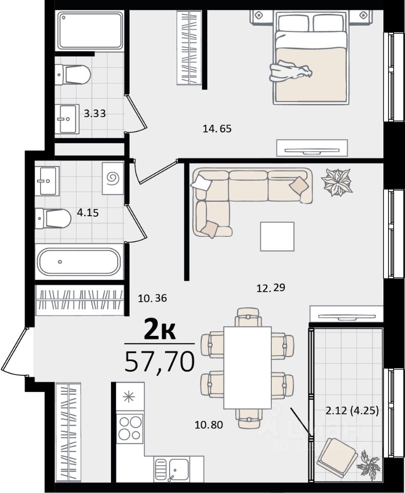 Продаётся 2-комнатная квартира в строящемся доме (Литер 4.1), срок сдачи: IV-кв. 2026, общей площадью 57.7 кв.м., на 12 этаже. Флагманский проект группы компаний Точно - жилой комплекс бизнес-класса Патрики, это 10 домов разной этажности расположившихся на 28,5 гектарах. Жилой комплекс с концепцией город в город - прогулочные аллеи, парковая территория, 3 детских сада, 2 школы - одна из которых частная, Гранд аллея с ресторанами, фонтанами и модными бутиками, уникальные мафы и ландшафтный дизайн, создают особую атмосферу - место в котором хочется находиться. В Патриках предусмотрен и креативный кластер Цех, который включает в себя пространство для коворкинга, фудкорт, бутики, детский комплекс, лектории, фитнес-клуб Баланс с волной для сёрфа. Но и это еще не все ГК Точно уважает историю, поэтому мы сохранили 2 башни - наследство от завода "Сельмаш" исторический арт-объект назвали Мастер и Маргарита.