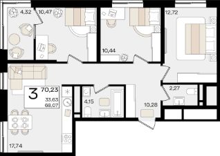 Продаётся 3-комнатная квартира в строящемся доме (Литер 1.5), срок сдачи: II-кв. 2026, общей площадью 70.23 кв.м., на 2 этаже. Флагманский проект группы компаний Точно - жилой комплекс бизнес-класса Патрики, это 10 домов разной этажности расположившихся на 28,5 гектарах. Жилой комплекс с концепцией город в город - прогулочные аллеи, парковая территория, 3 детских сада, 2 школы - одна из которых частная, Гранд аллея с ресторанами, фонтанами и модными бутиками, уникальные мафы и ландшафтный дизайн, создают особую атмосферу - место в котором хочется находиться. В Патриках предусмотрен и креативный кластер Цех, который включает в себя пространство для коворкинга, фудкорт, бутики, детский комплекс, лектории, фитнес-клуб Баланс с волной для сёрфа. Но и это еще не все ГК Точно уважает историю, поэтому мы сохранили 2 башни - наследство от завода "Сельмаш" исторический арт-объект назвали Мастер и Маргарита.