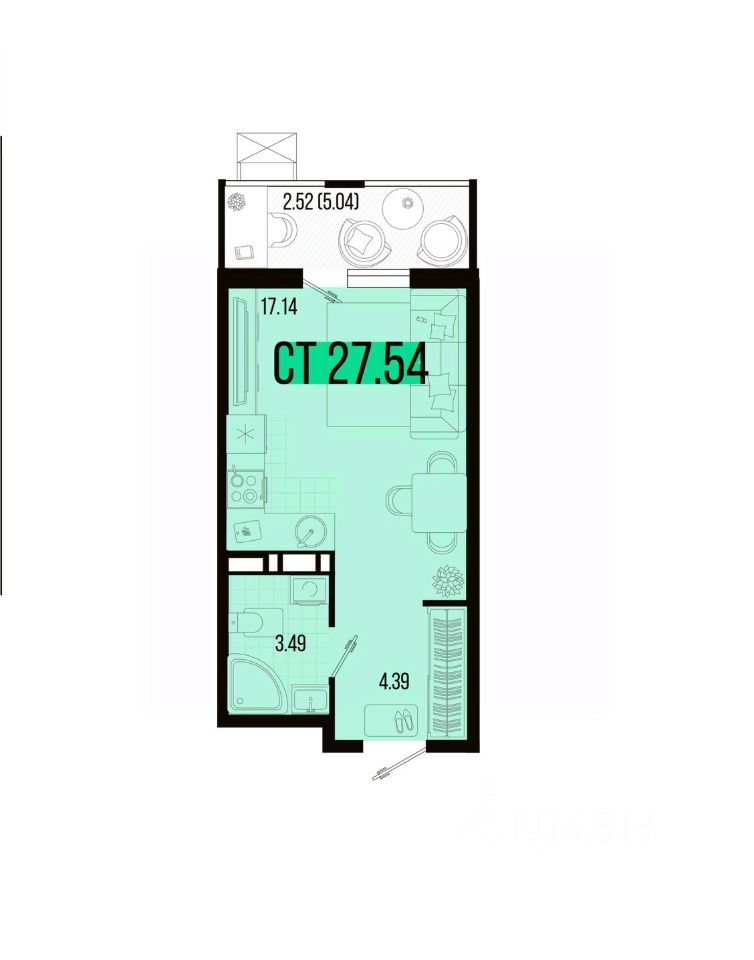 Общая площадь27,54 м²