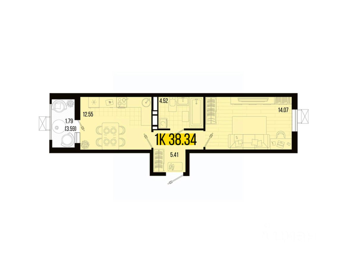 Общая площадь38,34 м²