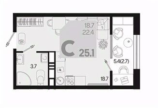 Общая площадь25,1 м²