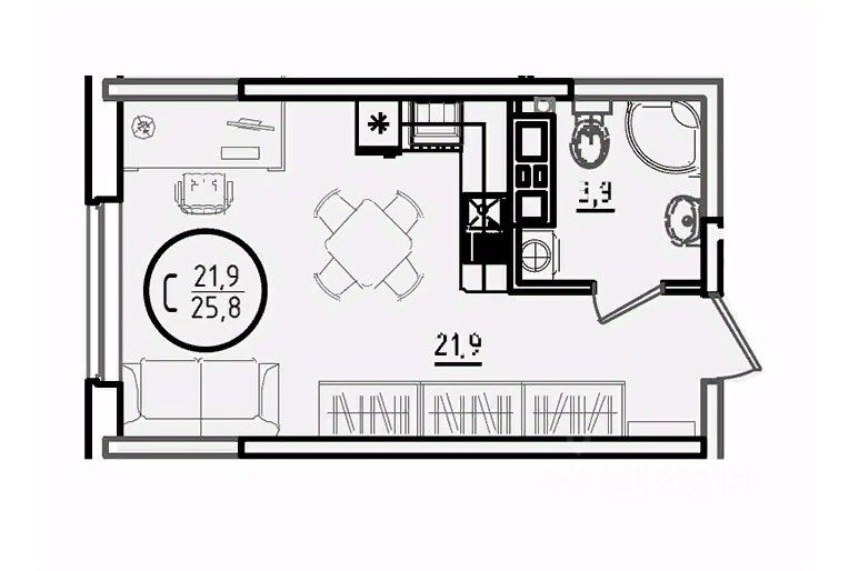 Общая площадь25,8 м²