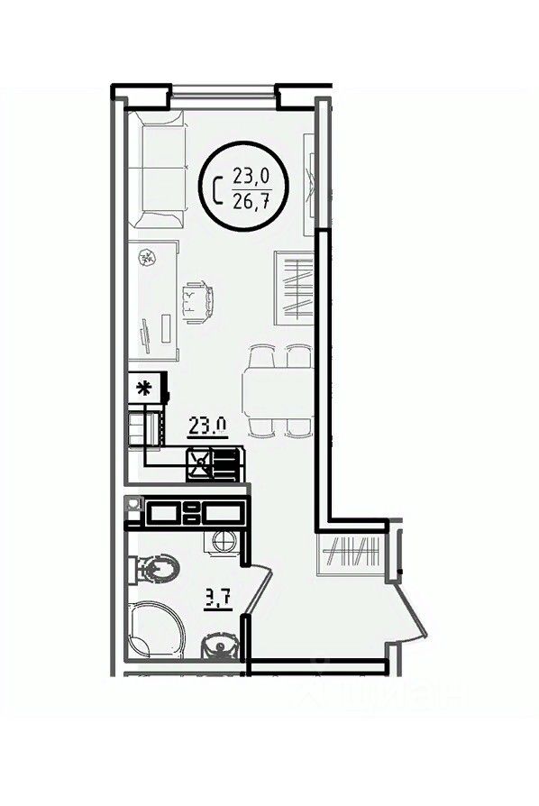 Общая площадь26,7 м²