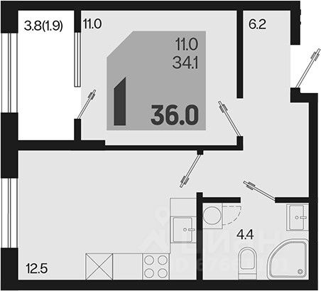 Площадь кухни12,5 м²
