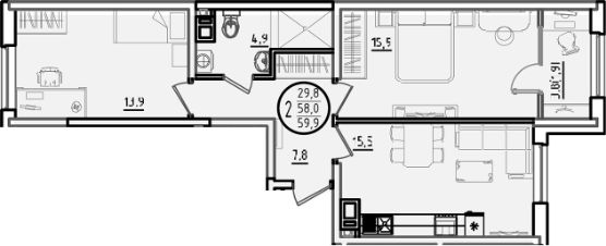Общая площадь59,9 м²