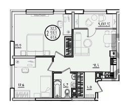 Общая площадь61,6 м²