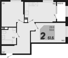 Общая площадь61,6 м²