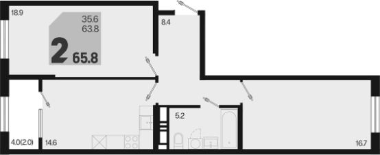 Общая площадь65,8 м²