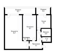 Просторные изолированные комнаты соединены большой светлой лоджией, создающей ощущение простора. Кухня станет местом для семейных обедов, а две вместительные комнаты — пространством для отдыха и уединения.