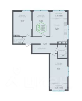 Продаётся 3-комнатная квартира, общей площадью 89,8 кв.м., на 8 этаже.