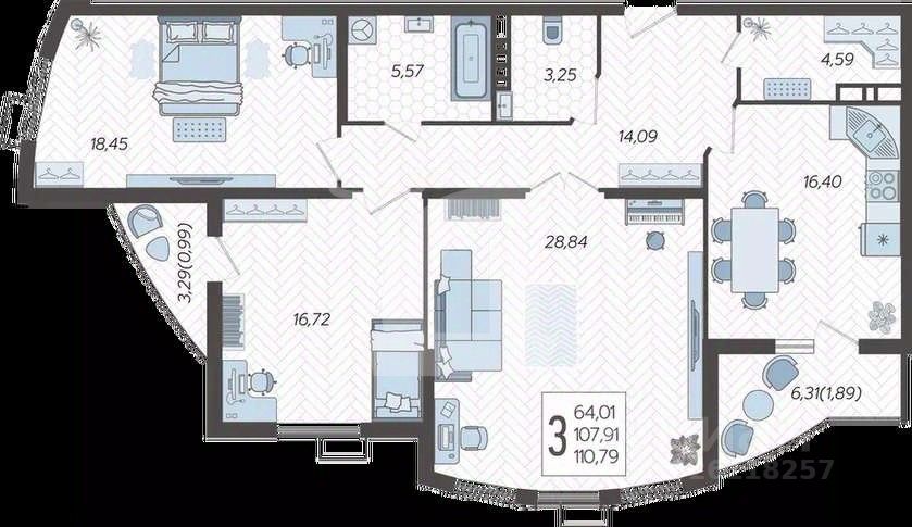В продаже 3к. квартира в ЖК "Режиссер".