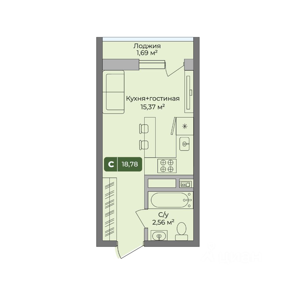 Общая площадь18,78 м²