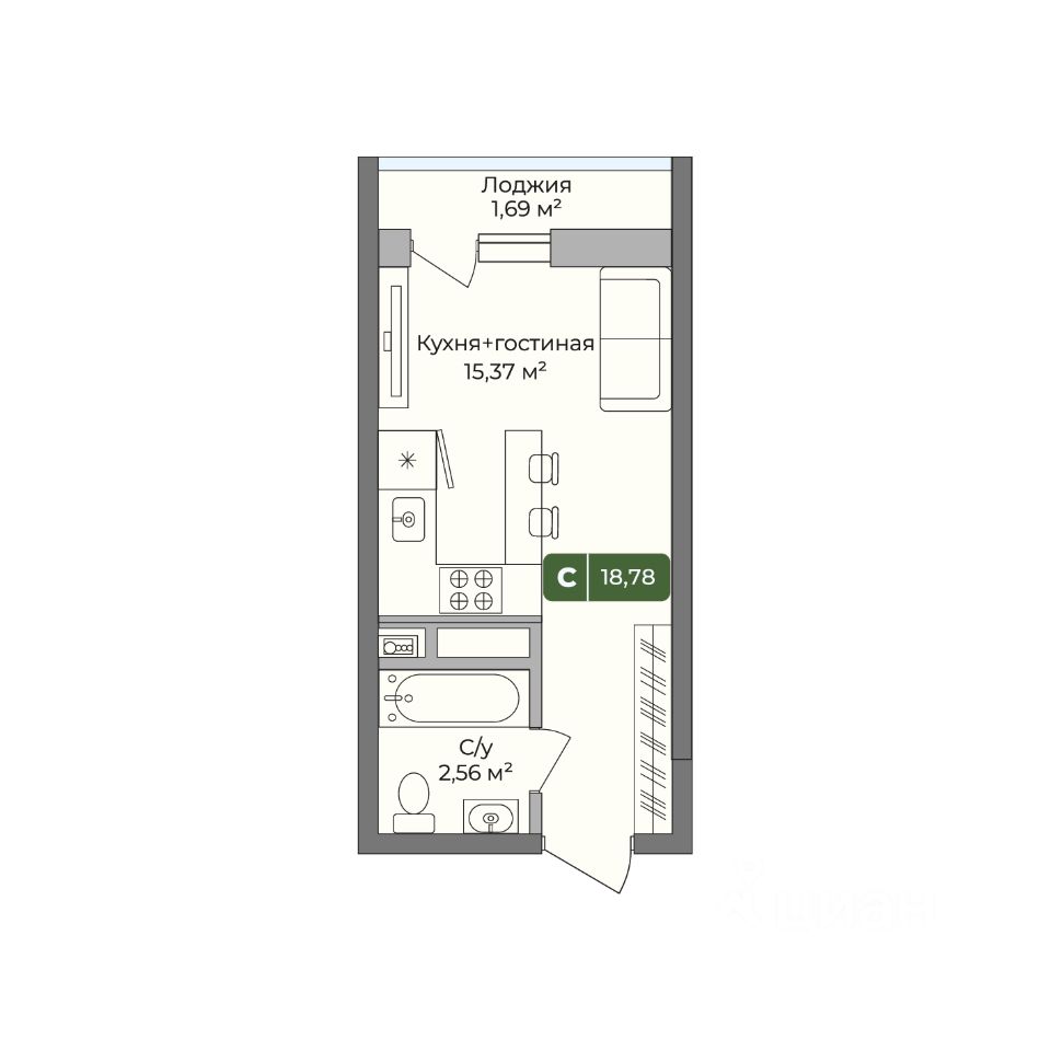 Общая площадь18,78 м²