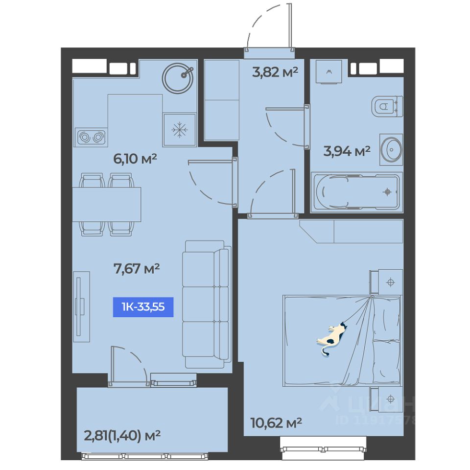 Общая площадь33,55 м²