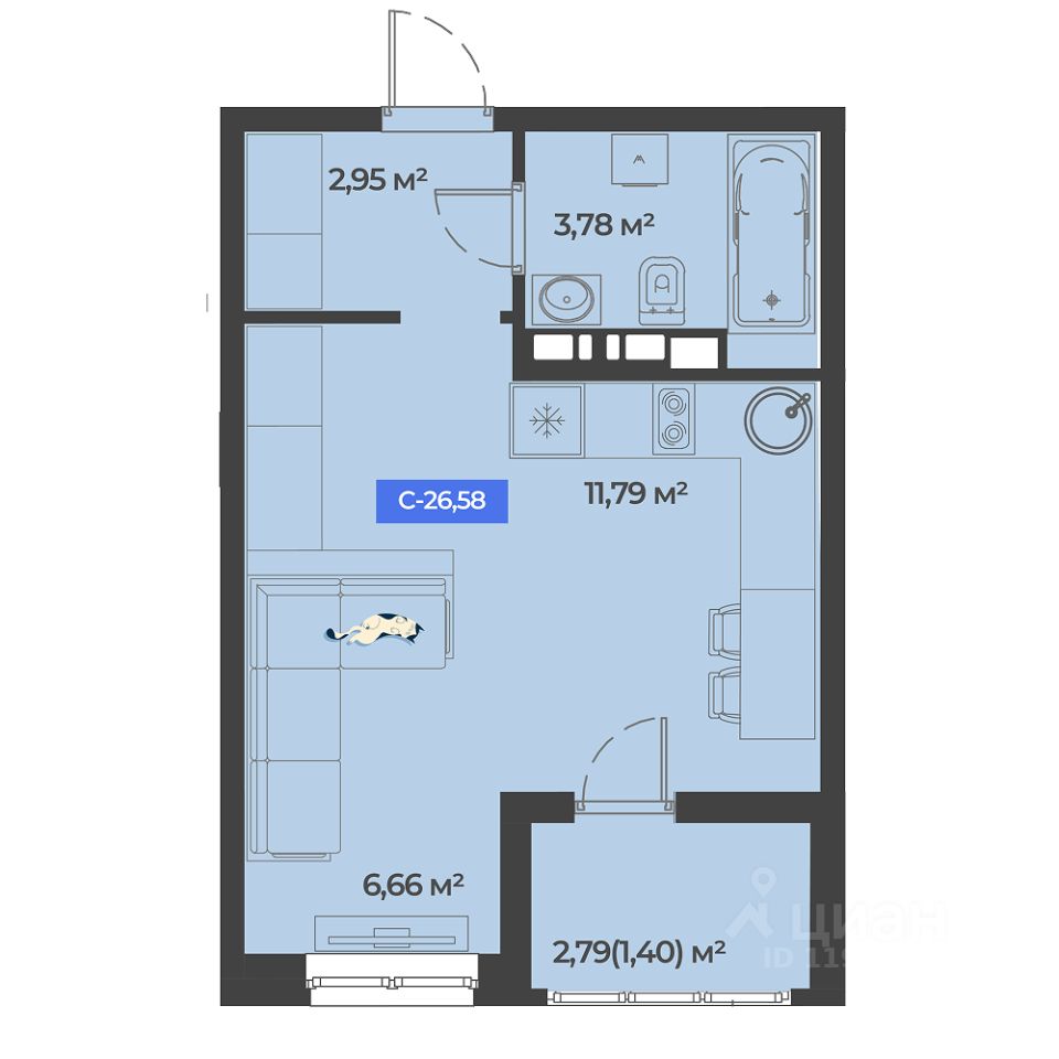 Продаётся студия в строящемся доме (Литер 1), срок сдачи: I-кв. 2027, общей площадью 26.58 кв.м., на 4 этаже. ЖК "Соловей" - это два малоэтажных литера в клубном формате, в которых продумана каждая деталь: от архитектурного облика до атмосферы двора.