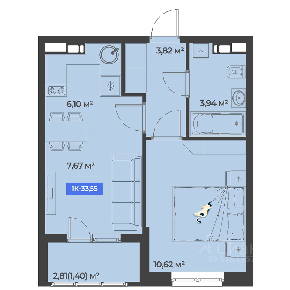 Продаётся 1-комнатная квартира в строящемся доме (Литер 1), срок сдачи: I-кв. 2027, общей площадью 33.55 кв.м., на 4 этаже. ЖК "Соловей" - это два малоэтажных литера в клубном формате, в которых продумана каждая деталь: от архитектурного облика до атмосферы двора.