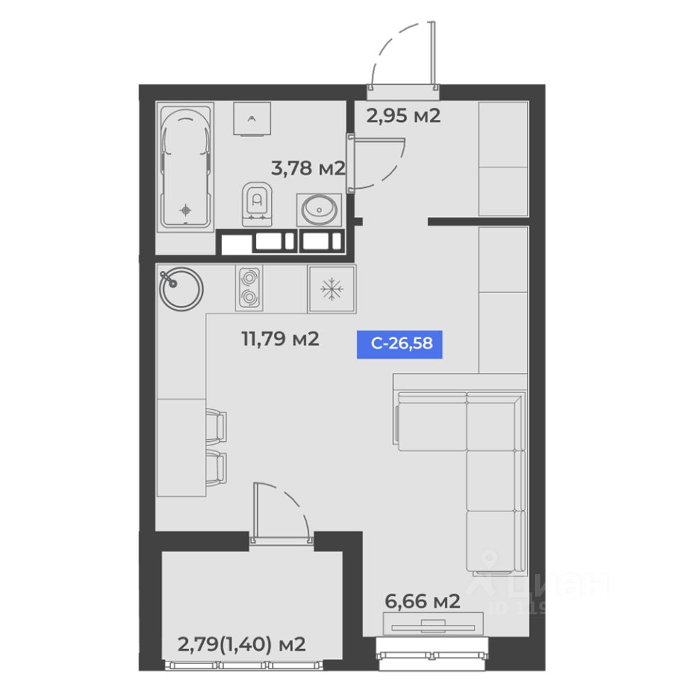 Продаётся студия в строящемся доме (Литер 1), срок сдачи: I-кв. 2027, общей площадью 26.58 кв.м., на 4 этаже. ЖК "Соловей" - это два малоэтажных литера в клубном формате, в которых продумана каждая деталь: от архитектурного облика до атмосферы двора.
