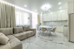 Квартира выполнена с качественным дизайнерским ремонтом, сочетающим функциональность и современные решения. Установлена новая мебель и премиальная бытовая техника, что обеспечит максимальный комфорт и высокое качество жизни. Просторная кухня-гостиная позволяет комфортно размещаться всей семьей, а раздельный санузел добавляет удобство в повседневном использовании. Планировка продумана для комфортного проживания: комнаты изолированы, что обеспечивает приватность, а общая площадь позволяет расставить мебель без ощущения тесноты.