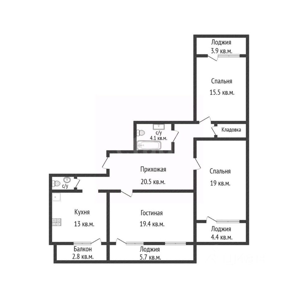 - просторная и светлая гостиная 19,4 кв.м. с двумя окнами и выходом на застекленную лоджию станет центром притяжения для всей семьи