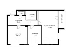 Лучшая планировка с просторной кухней-гостиной 23 кв.м и застекленным балконом.
