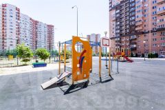 Придомовая территория с зеленью, детскими и спортивными площадками, большой парковкой.