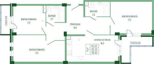 Общая площадь90,76 м²