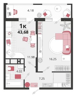 Продаётся 1-комнатная квартира в сданном доме (Литер 21), срок сдачи: IV-кв. 2024, общей площадью 43.55 кв.м., на 2 этаже. "Родные просторы"- самодостаточный