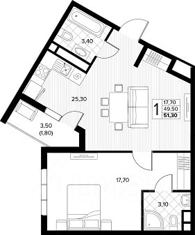 Продаётся 1-комнатная квартира в строящемся доме (поз.8), срок сдачи: II-кв. 2026, общей площадью 51.3 кв.м., на 3 этаже. Новый жилой комплекс "Кипарис" от застройщика "AVA" расположен по адресу: Россия, Краснодарский край, муниципальный округ Анапа, село Сукко, Мирная улица