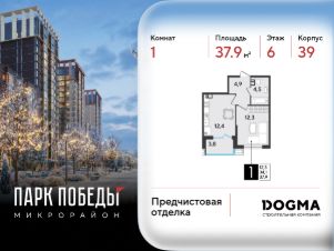 Срок сдачи: 2 кв. 2026, общей площадью 37.9 кв.м., на 6 этаже.
