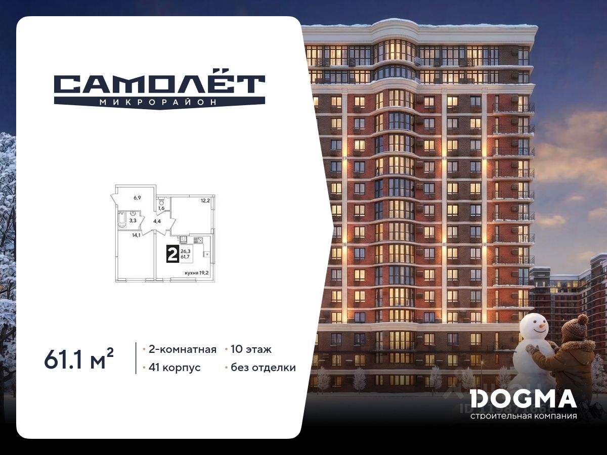 "САМОЛЁТ" - концептуальный жилой микрорайон, который расположен на северо-западе Краснодара, в районе Западного Обхода. Квартал спроектирован для комфортной жизни: современные дома с разными планировками, дороги, школы и детские сады, поликлиника, торговые центры, парки и аллеи. Микрорайон находится далеко от промышленных предприятий, сочетает удобство городской жизни и экологически благоприятную среду. Инфраструктура нового микрорайона: • Видовые квартиры с панорамным остеклением • Безбарьерная среда • Просторные стильные лобби • Сквозные подъезды • Квартиры с террасами • Улучшенная отделка от застройщика • Подземный паркинг и кладовые • Видеонаблюдение и круглосуточный пост охраны • 9 детских садов • 4 школы в шаговой доступности • Кольцевая велодорожка • Аллея спорта • Собственный пешеходный бульвар 1,6 км • Дубовая аллея • 11 павильонов фудкорта • Светомузыкальный пешеходный фонтан протяжённостью 55 м • Торговые галереи • Храм сорока Севастийских мучеников • Скейт-парк • Детская акваплощадка • Детский городок • Крытая зона для бокса и единоборств • Площадки для выгула собак • 9 остановок городского транспорта • Дороги-дублёры Приобрести квартиру можно одним из способов: -субсидированная семейная ипотека 4,5 % на весь срок -рассрочка до конца строительства -оплата наличными -дистанционная покупка Позвоните сейчас и забронируйте квартиру со скидкой!