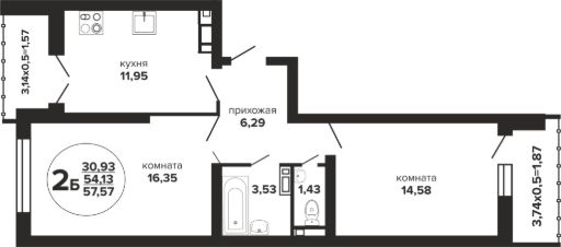 Общая площадь57,57 м²