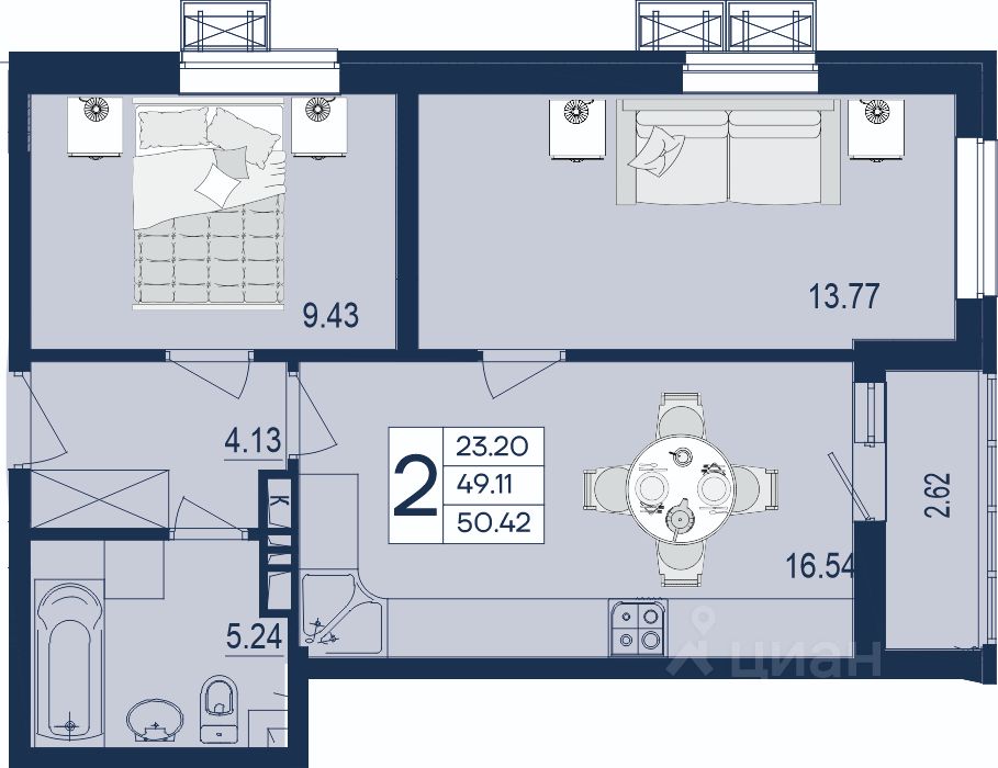 2 комнатная квартира с ремонтом 50.42 м², на 8 этаже в жилом комплексе "Дом 101".