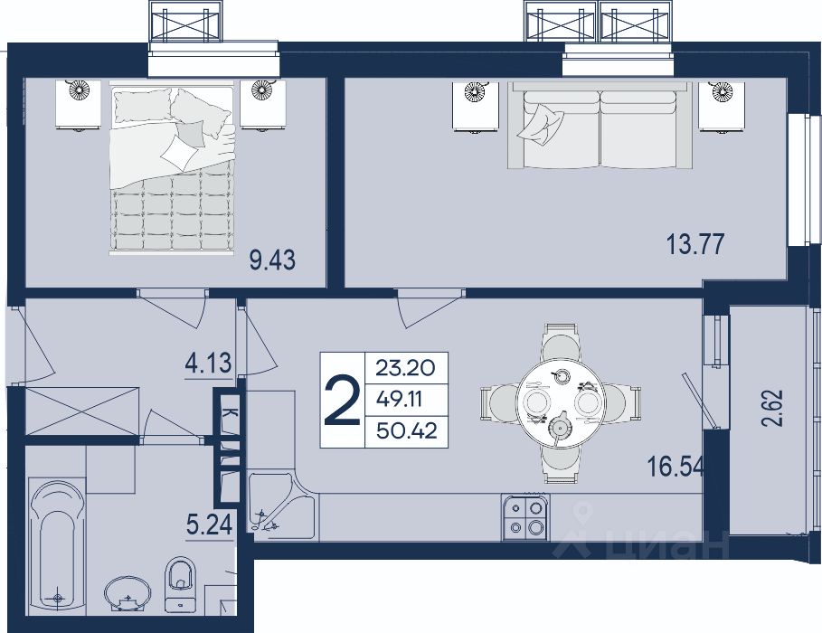 2 комнатная квартира с ремонтом 50.42 м², на 8 этаже в жилом комплексе "Дом 101". ЖК Дом 101 - это уникальное пространство на территории 101 га. Парк 20 га с спортивными площадками и амфитеатром. Школа на 1725 мест и пять детских садов. Благоустроенные дворовые территории с детскими площадками и зонами отдыха создают комфортную среду для семей. 429