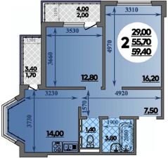 Продаётся 2-комнатная квартира в строящемся доме (Литер 7.1), срок сдачи: I-кв. 2026, общей площадью 59.4 кв.м., на 14 этаже. ВЫГОДНОЕ РАСПОЛОЖЕНИЕ