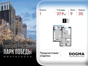 Срок сдачи: 2 кв. 2026, общей площадью 37.9 кв.м., на 9 этаже.