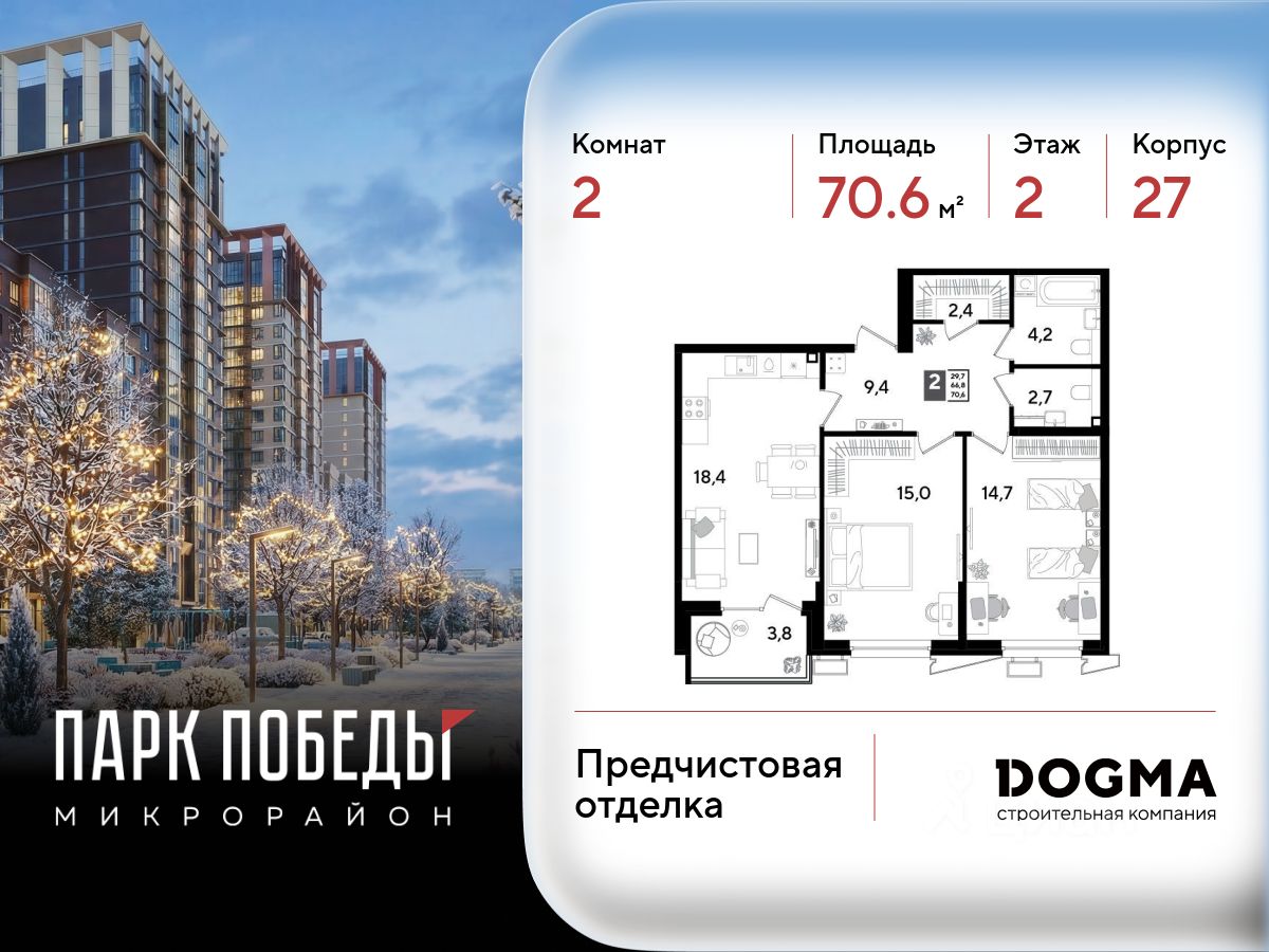 В продаже 2-комнатная квартира от застройщика! ЖК "Парк Победы 2", г. Краснодар, Литер 29 Срок сдачи: 1 кв. 2026, общей площадью 70.6 кв.м., на 2 этаже. Концептуально новый микрорайон "ПАРК ПОБЕДЫ" - это статная архитектура, вдохновленная наследием страны. Уникальное культурное пространство в стиле сталинского ампира, который отличает монументальность, классические пропорции и четкость линий. •Безбарьерная среда •Сквозные подъезды •Авторские лобби •Видовые квартиры с панорамным остеклением •Квартиры с мастер-спальнями и отдельными гардеробными •Потолки 3 метра •Улучшенная отделка от застройщика •Подземный паркинг и кладовые •Дворы без машин с видеонаблюдением •Круглосуточный пост охраны •Школа для 1 550 учеников •4 детских сада •Уличные тренажёры, зоны для пинг-понга и йоги •Крытый боксёрский ринг •Собственный пешеходный бульвар •Прогулочные аллеи с фонтаном •Коммерческие помещения на первых этажах Приобрести квартиру можно одним из способов: -субсидированная семейная ипотека 4,5 % на весь срок -рассрочка до конца строительства -оплата наличными -дистанционная покупка Позвоните сейчас и забронируйте квартиру со скидкой!