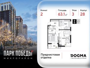 Срок сдачи: 1 кв. 2026, общей площадью 63.1 кв.м., на 3 этаже.