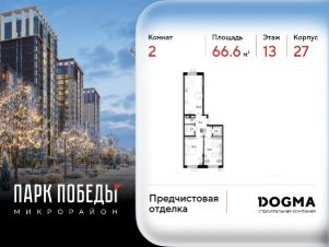 Срок сдачи: 1 кв. 2026, общей площадью 66.6 кв.м., на 13 этаже.