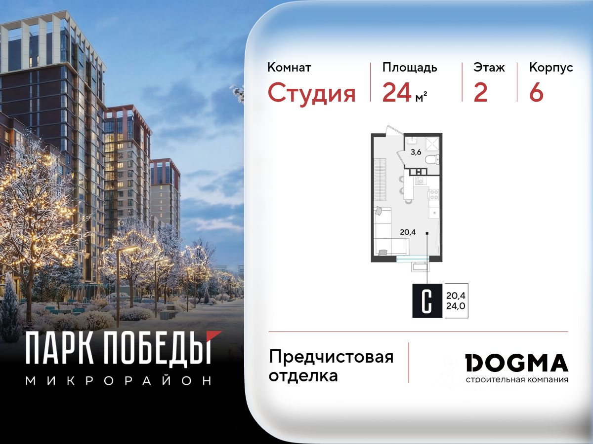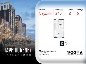 Срок сдачи: 2 кв. 2026, общей площадью 24 кв.м., на 2 этаже.