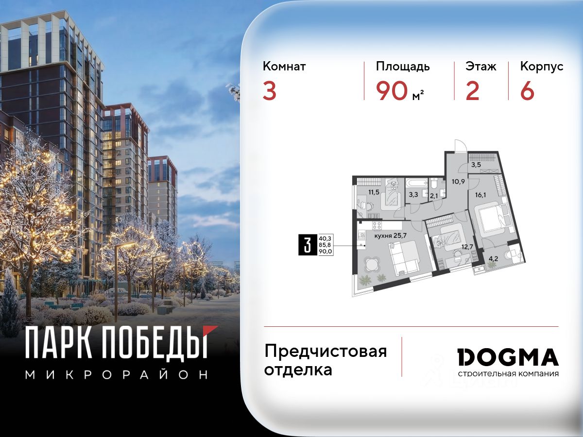 В продаже 3-комнатная квартира от застройщика! ЖК "Парк Победы 2", г. Краснодар, Литер 1